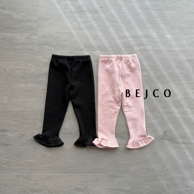 もっちりふわふわリブのレギンス 裾口が さりげないフリルになっていて 可愛いです♡ 裏はふわふわとした薄裏起毛 伸縮性があり 動きやすく暖かいので おでかけにも重宝するアイテムです **商品詳細** 【color】 black/pink 【size】 XS(80-90 S(90-100 ※メーカー記載サイズです 平置き寸法も合わせてご確認ください XS ウエスト 約19cm 丈 約44cm S ウエスト 約20cm 丈 約49cm